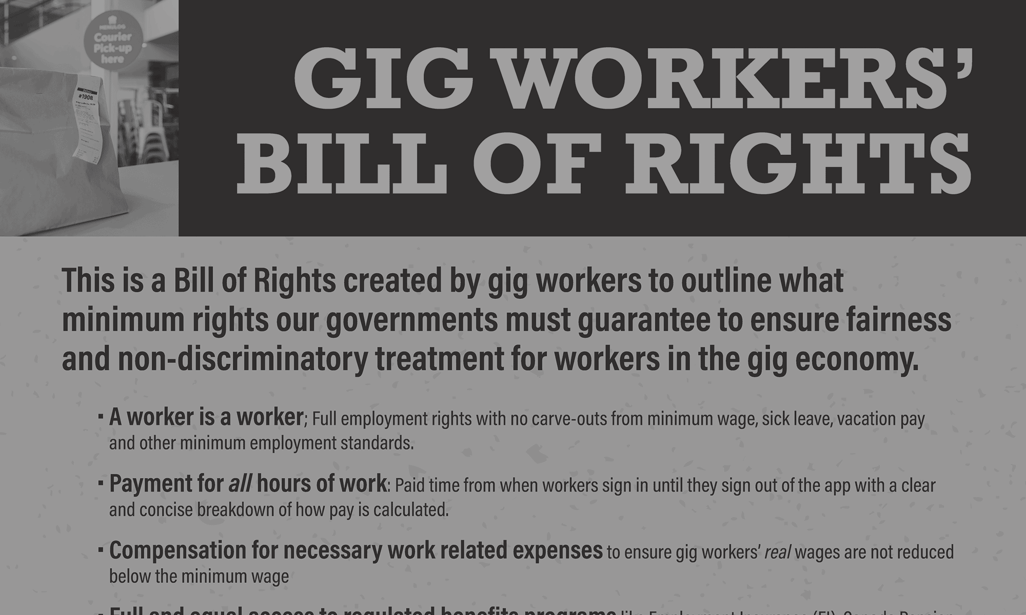 This is a Bill of Rights created by gig workers endorsed by Gig Workers United (CUPW), Uber Drivers